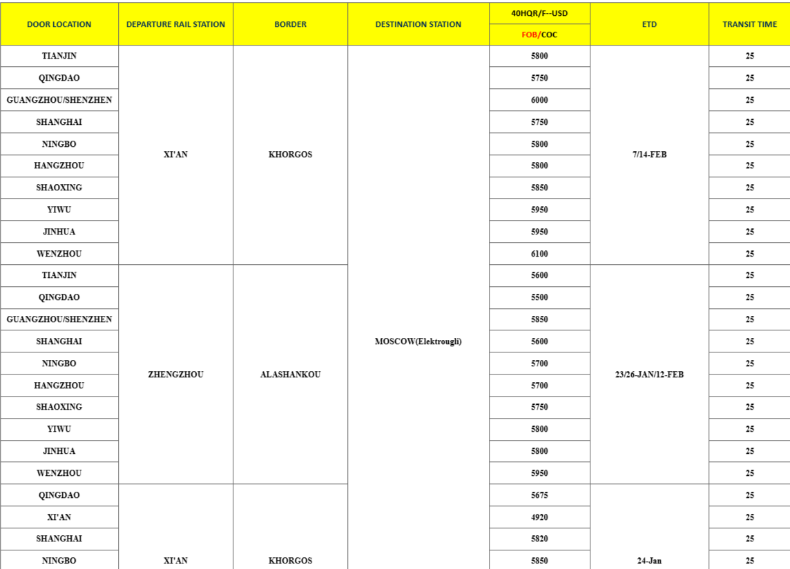 Ниже еженедельное обновление цен и услуг для ключевого торгового коридора, соединяющего Китай с Россией, Беларусью и Центральной Азией (включая Казахстан).