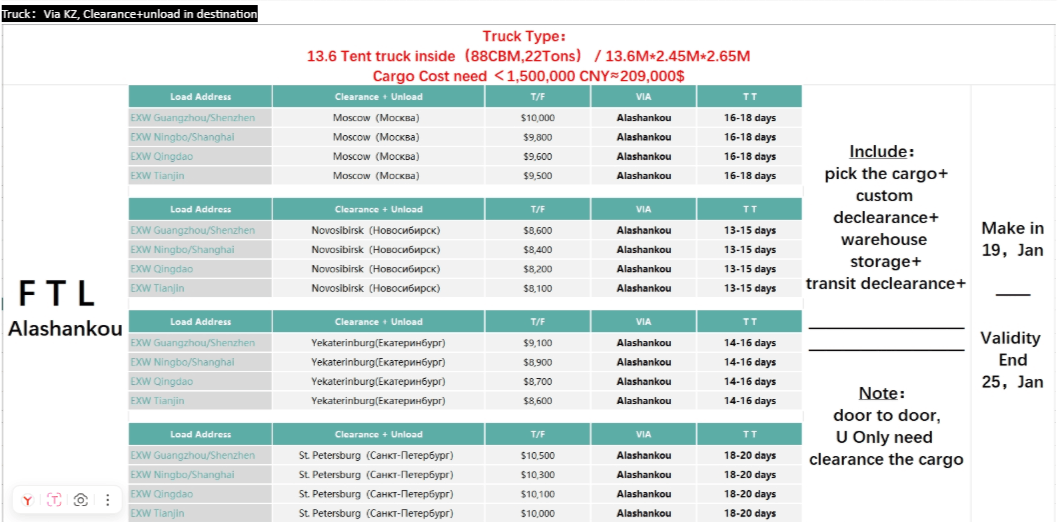 Логистический аудит 21.01.2026 тарифов на Cross-Border Multimodal Transportation.