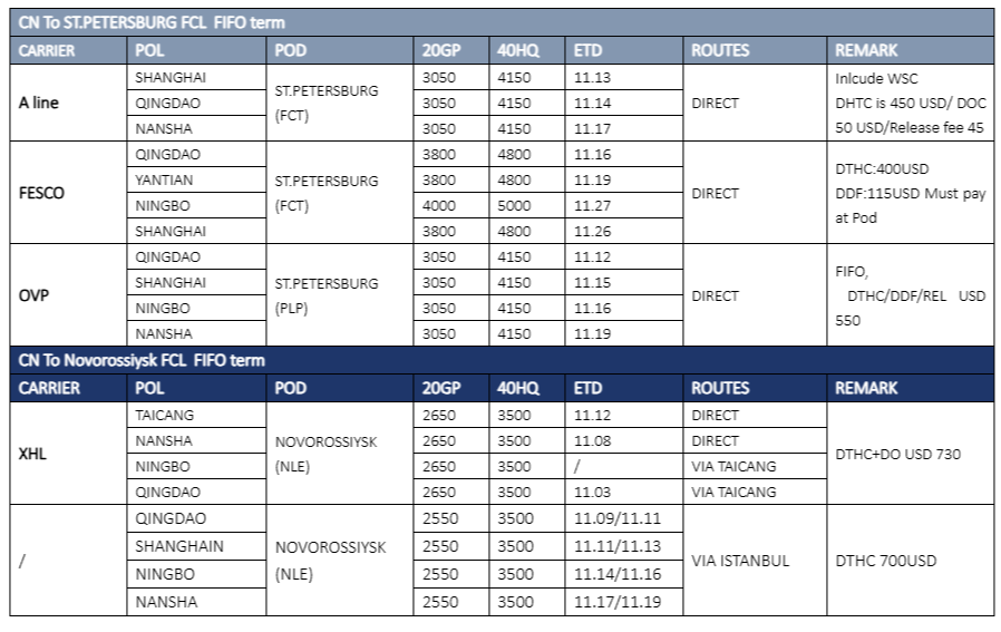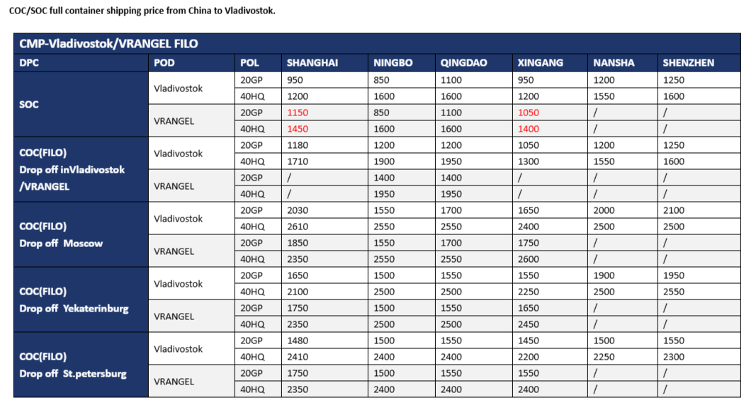 Логистический аудит цен на доставку из Китая (Updated recent shipping costs from China's main ports -St. Petersburg Russia).