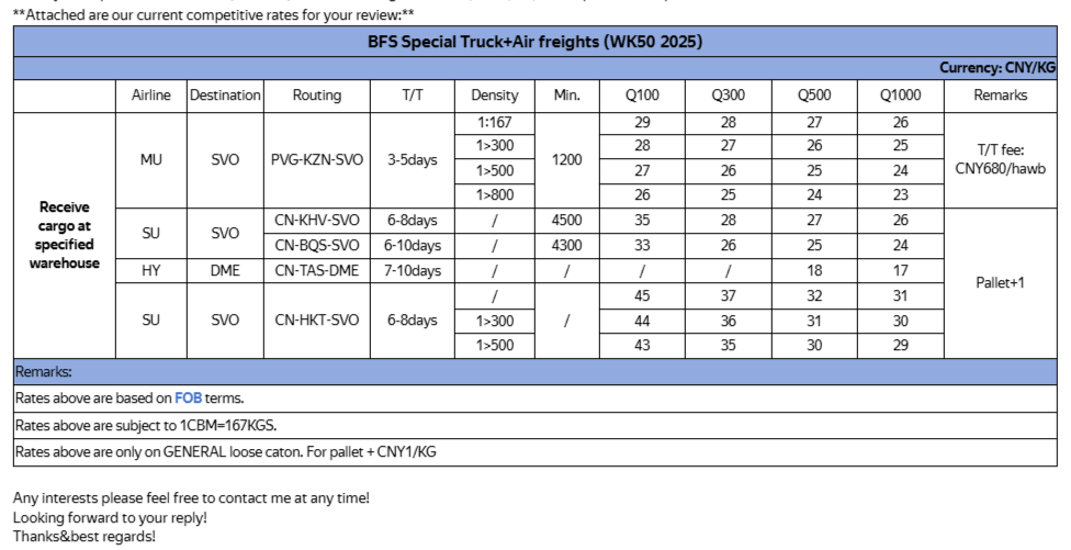 Логистический аудит тарифов air freights (WK50-52 2025)